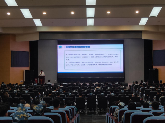 会上,21级新生辅导员魏民生老师向各位新生介绍了各班级班主任的安排情况,全体班主任依次起立向同学们示意,全场响起热烈掌声。接着,他向同学们宣读了公司疫情防控期间的校园管理制度,进行了新生入学安全教育,重点就预防电信诈骗进行了强调。“每年开学季都是诈骗案件的高发期,请大家务必按要求下载安装‘国家反诈中心’APP,坚决做到任何时候不转账!”
