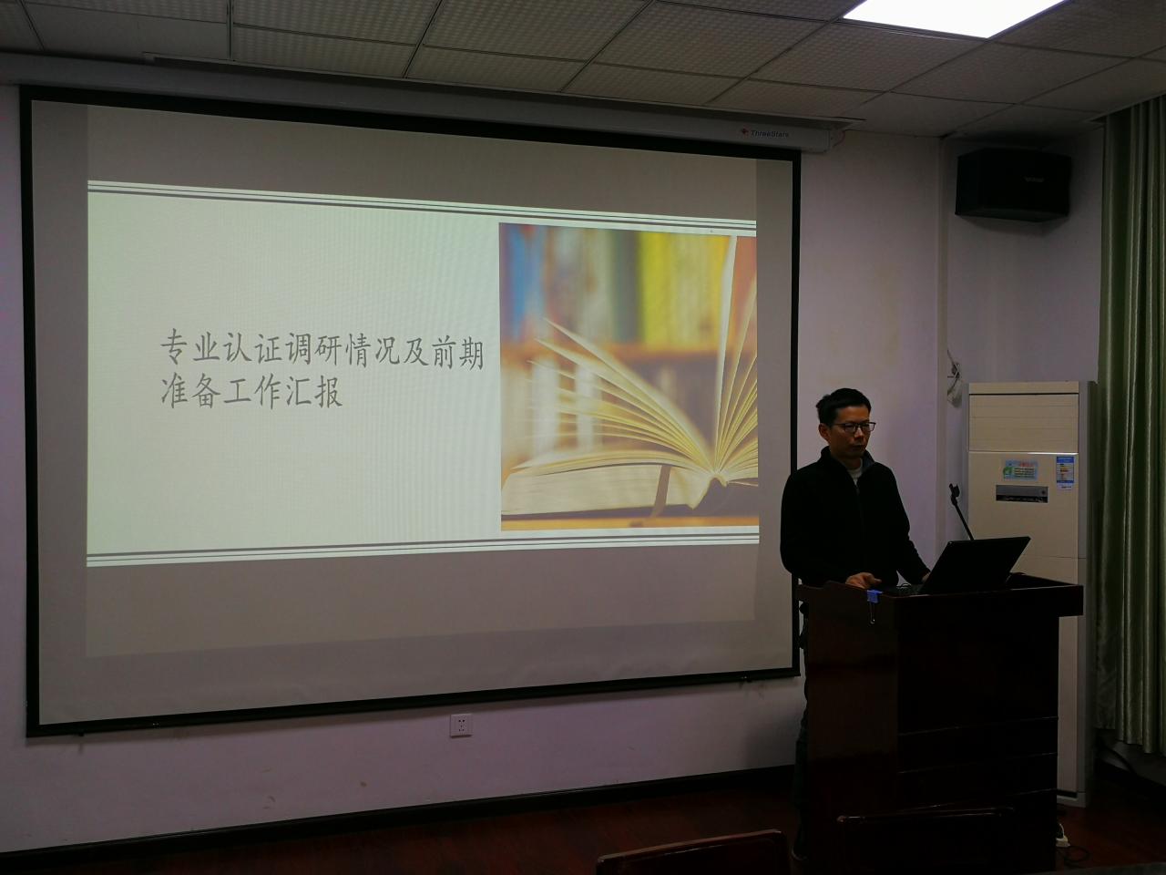 给排水科学与工程系系主任黄向阳老师首先介绍了前期工作:给排水科学工程系利用前期时间对开办有该专业并已通过专业认证的安徽工业大学和西安建筑大学进行了调研,结合两所公司并对比公司给排水专业的情况提出了一些建议:修订培养方案,实验室按评估要求进行配置并整合,实验设备及耗材的采购,招聘专任教师及专职实验教师,毕业设计、课程设计、相关手册、规范的采购,员工满意度调查问卷的制定等向与会人员做了详尽的介绍。