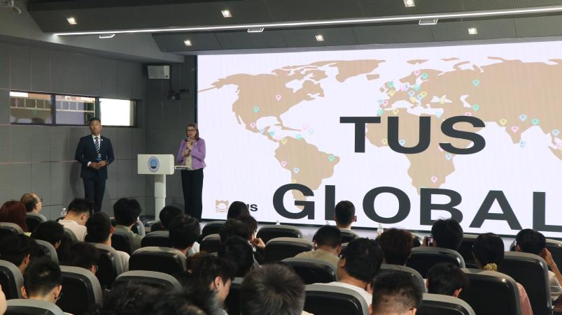 此外,TUS团队会后在16教A313面向土木工程中外合作项目员工举办了宣讲会,会上Mary Simpson详细解读"3+1"双学位项目、奖学金政策及爱尔兰实习机会。亚洲区主管孟晶结合案例,分析项目在职业资格认证、海外升学等方面的优势,现场员工反响热烈。