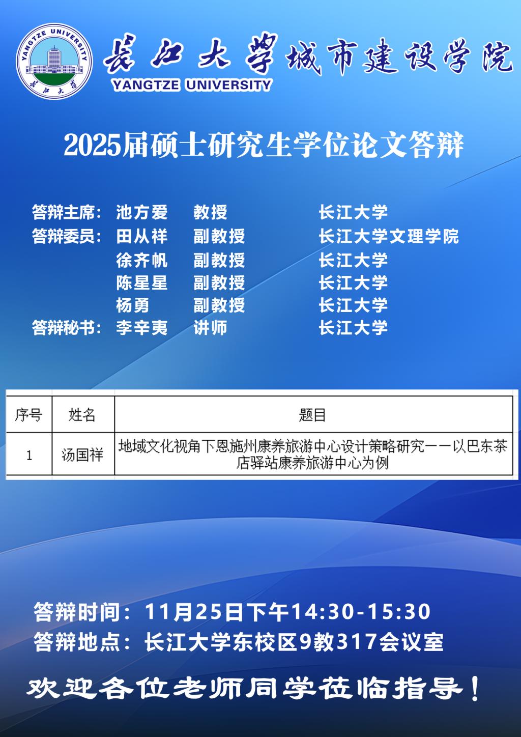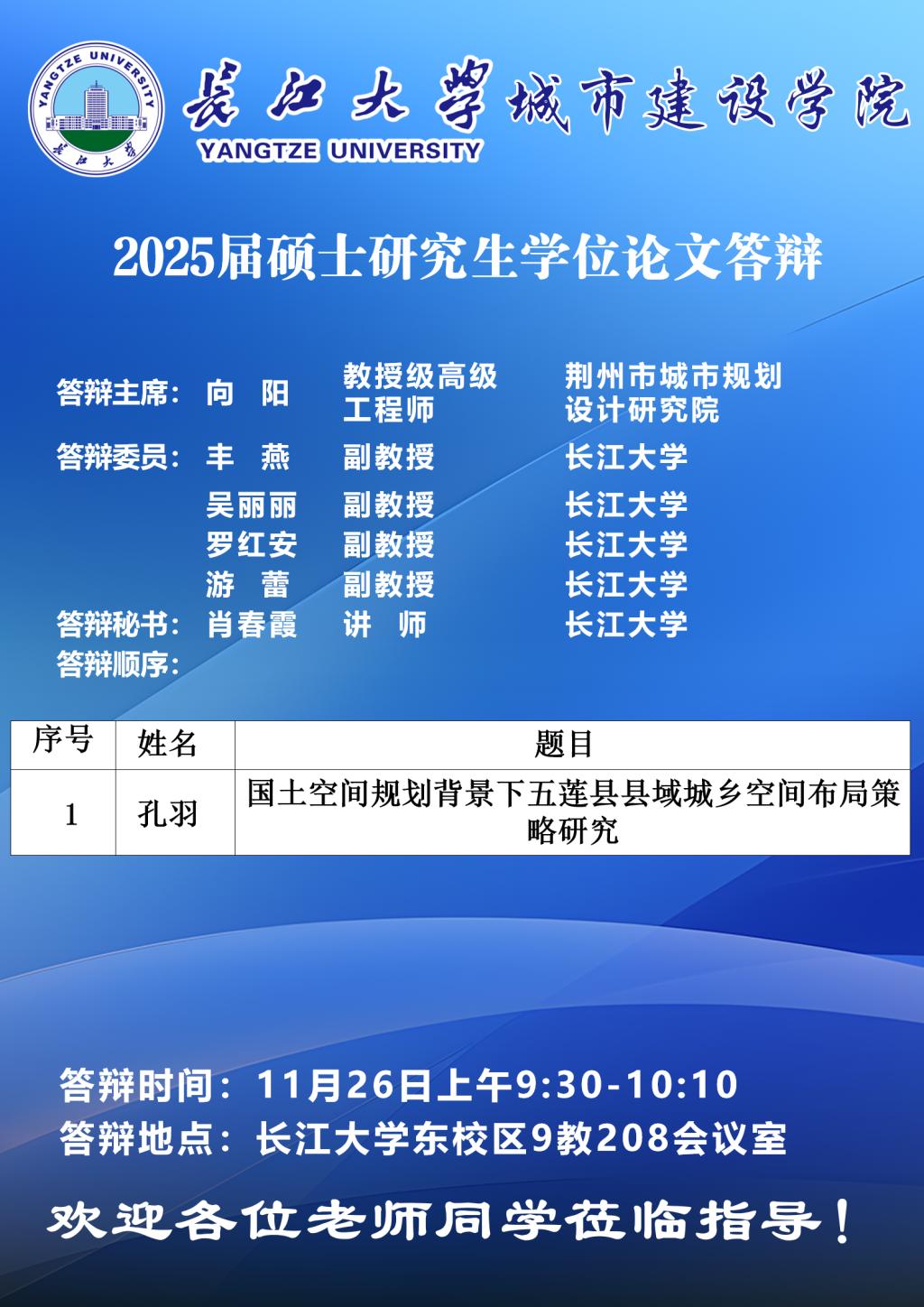 williamhill中国官网入口2025届12月硕士研究生学位论文答辩公告(二)【山承洋、汤国祥、孔羽】