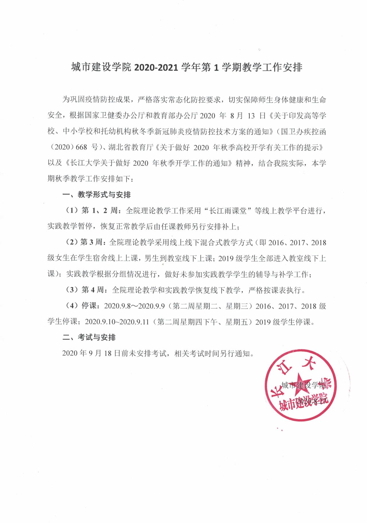 williamhill中国官网入口2020-2021学年第1学期教学工作安排