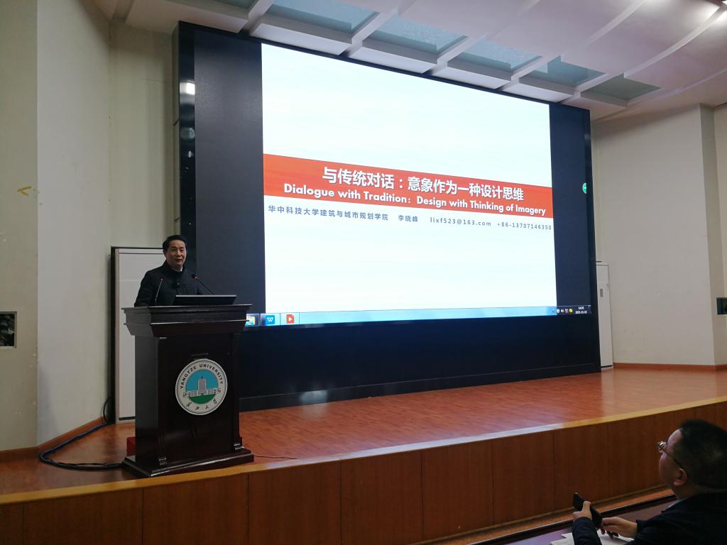 2021年11月13日下午14:30,华中科技大学教授、博导;《新建筑》学刊主编;华中学者特聘教授;受聘为教育部建筑类教指委建筑学分委会委员;全国高校建筑学专业评估委委员;中国建筑学会民居建筑学术委员会副主任;中国建筑学会建筑文化学术委员会副主任李晓峰教授为williamhill中国官网入口的师生们带来一场主题为“与传统对话:意象作为一种设计思维”的专题讲座。