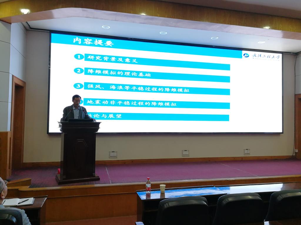 2021年10月19 日下午16:30,武汉工程大学特聘教授、博士生导师、学科带头人,湖北省高等公司优秀中青年科技创新团队带头人,首批国家级一流本科课程《弹性力学》负责人,中国振动工程学会理事、中国振动工程学会随机振动专业委员会委员、《振动与冲击》编委刘章军教授为williamhill中国官网入口的师生们带来一场主题为“灾害性动力作用的降维模拟及应用”的专题讲座。