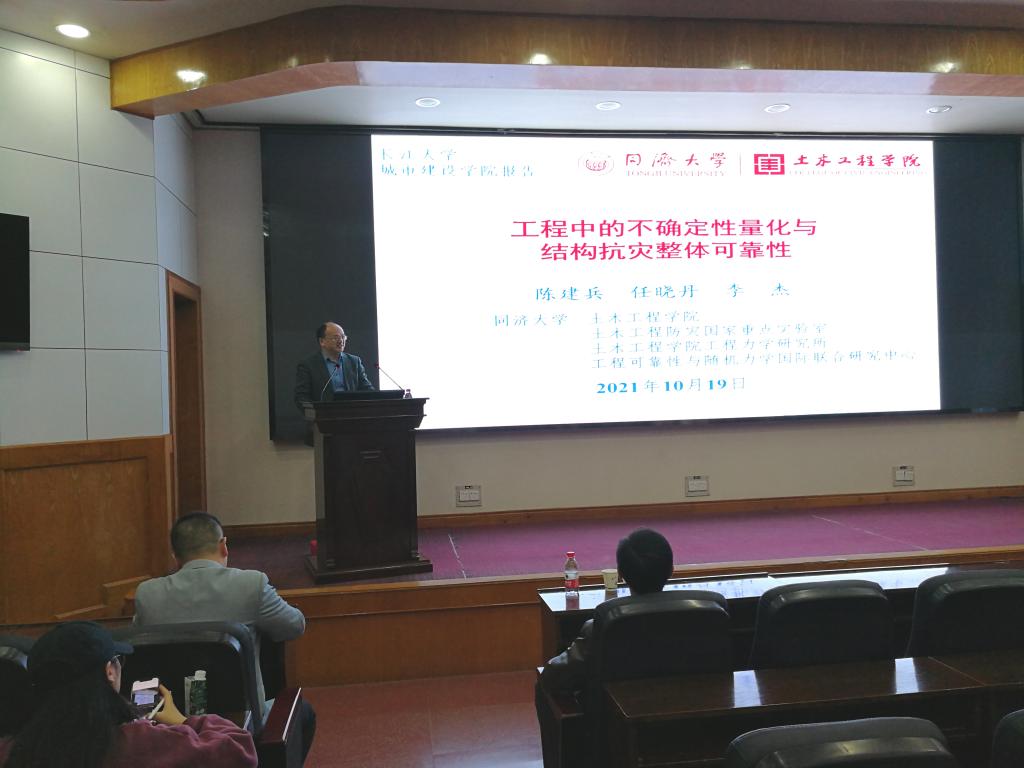 2021年10月19 日下午15:00,同济大学长期特聘教授、博士生导师,同济大学学术委员会委员、土木工程防灾国家重点实验室副主任,国家杰出青年科学基金获得者陈建兵教授为williamhill中国官网入口的师生们带来一场主题为“工程中的不确定性量化与结构抗灾整体可靠性”的专题讲座。