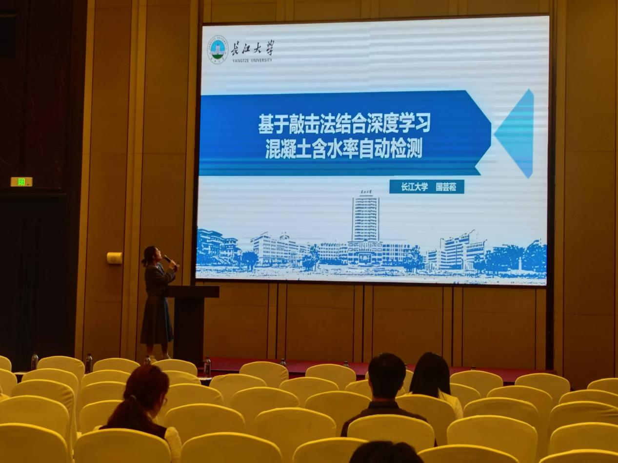 2024级硕士研究生国芸菘作为张继承教授课题组代表,在结构损伤诊断与状态评估方法1分会场中,就团队在“基于敲击法结合深度学习混凝土含水率自动检测”课题取得的进展进行了学术汇报。该报告详细介绍了混凝土结构含水率检测的重要性与相关检测方法的发展现状,并重点介绍了团队结合深度学习技术的研究模型框架与方法优势。