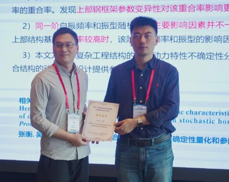 公司张衡副教授受邀参加此次盛会,并在分会场作题为“竖向混合结构自振特性不确定性量化和参数全局灵敏度分析”的学术报告。报告内容基于同伦随机有限元法对竖向混合结构的基本动力特性开展参数的全局灵敏度分析,实现了构件层次的结构自振特性影响因素的重要性排序。报告内容得到与会专家的充分肯定。