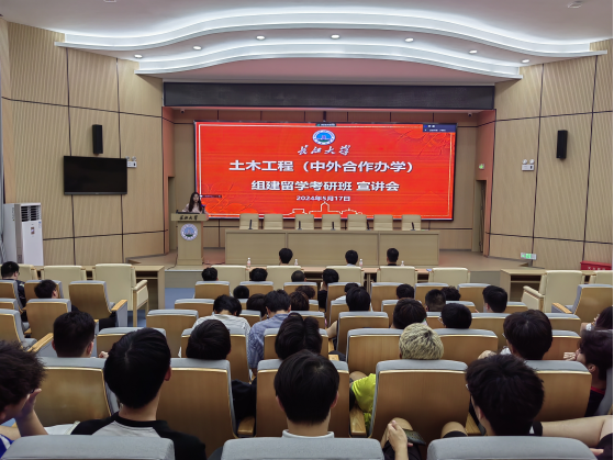 (通讯员 张琳)5月17日晚,土木工程(中外合作办学)项目组建留学考研班动员会在11教学术报告厅召开,城建公司副经理黄向阳、公司党委副书记周洁如、中外合作办学项目主任袁洪强、学工办主任魏民生及2022级土木国际员工和家长参加了会议,会议由公司党委副书记周洁如主持。