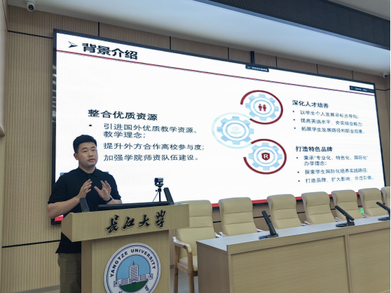 袁洪强老师向22级国土员工详细介绍了组建留学考研班(简称“国研班”)的实施方案、培养规划和选拔条件。他强调组建留学考研班是公司对中外合作办学项目的资源整合,是公司打造特色育人项目的有效途径,希望同学们能把握住机会,通过在国研班学习提升自己的综合素质能力。