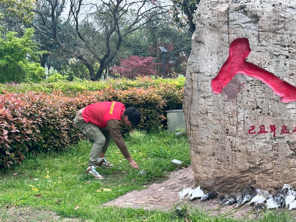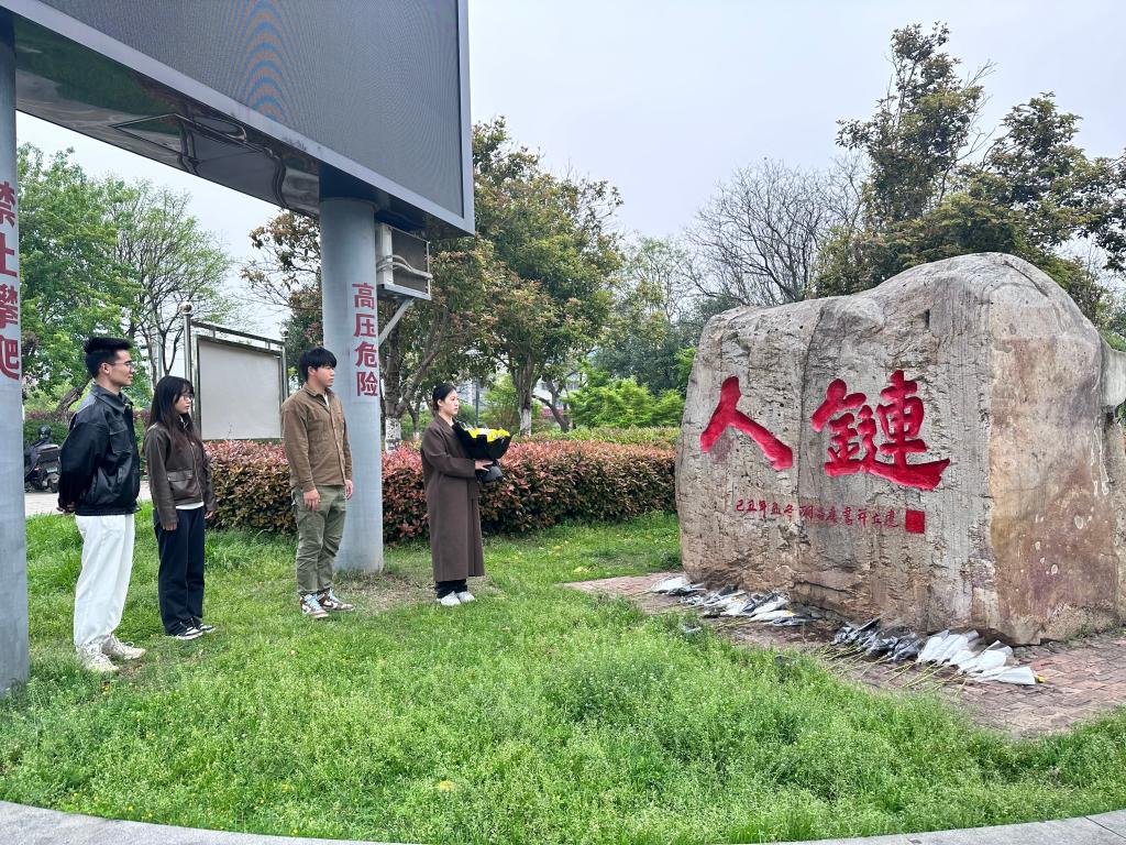 中午12时许,师生从东校区前往荆江大堤宝塔湾”人链“纪念碑前。到达纪念碑现场后,同学们首先仔细清扫了周围的环境,随后,公司团委副书记刘安琪带领同学们面向纪念碑默哀一分钟,缅怀英雄,寄托哀思。最后,在庄严肃穆的氛围里,城建公司员工代表向“人链”纪念碑献花,深切悼念陈及时、何方旭、方招三位烈士。