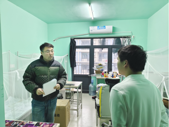 为保障寒假前后员工的安全, 2024年1月19日下午,各年级辅导员及班主任走进员工宿舍,认真查看离校前宿舍卫生整理和断电情况,与暂未离校的同学进行谈话交流,表达对员工的关心,了解员工的实际诉求,对返乡等交通安全事宜进行温馨提醒,鼓励员工寒假期间制定合理的计划,坚持良好的学习和生活习惯,不断提升完善自我。