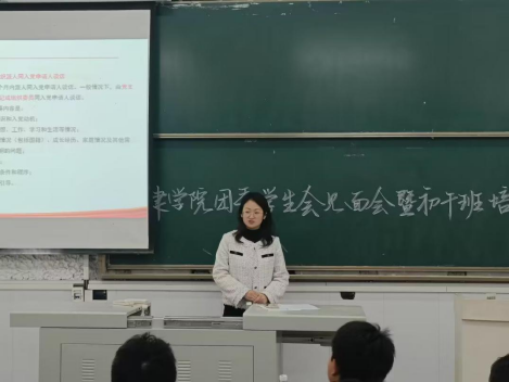 (通讯员 张剑琳)为引导2022级员工从大一就了解入党流程,端正入党动机,4月6日下午,党建专干及就业专干胡冰恒老师于西校区3教T1为2022级“未来计划”初干班学员、第十九届团委员工员工干部开展了“如何向党组织靠拢”的入党工作培训。院团委副书记何儒权、22级员工辅导员杜琛参加本次会议。