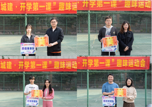 趣味运动会结束后,公司四个奖项:“团队风采奖”、“道德风尚奖”、“最佳组织奖”、“阳光活力奖”分别由建规2班、土木1班、土木2班、建规1班获得,并由李振老师、周喆老师、盖东芳老师、胡冰恒老师亲自颁奖。