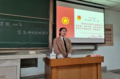 本次活动分为优秀主讲人、活力团小组、活力团支部三部分。随着主讲人郑建龙对其家乡山东德州的介绍,本次活动也拉开了序幕。他在“主题演讲”环节向大家介绍了暑假期间于其家乡开展的老员工志愿服务活动,将党史故事与个人成长相结合,分享他的学“习”感悟。他讲解时图文翔实、语言精确,让同学们感受到了新时代青年服务社会服务人民的志愿热情。