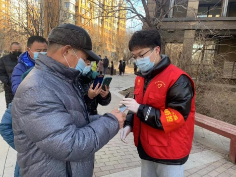 在工作的过程中,有两件事让我印象很深刻:一个是在我上门登记信息时,有一位年迈已高的老奶奶,她的子女都在外工作,因为疫情无法回到家中。奶奶对于智能手机的使用并不是很熟悉,并询问我要怎么做,我对她说:“奶奶您不用担心,有我在呢,等大部分人都检测完毕后,我给您打电话,您穿好衣服,我来带您去做核酸。”之后,我留了奶奶的一个联系方式,便前往其他家登记信息。第二天在大部分人都完成核酸后,我去到奶奶家带领奶奶去核酸检测点进行信息登记和检测,在将奶奶送回家和她分别时,她语重心长地对我说了:“谢谢你,小伙子”,短短的六个字,就像一把火,温暖了我的心。在第一次全员核酸检测的工作结束后,我瘫坐在了地上。那天正是腊八节,“腊七腊八,冻死寒鸦”,天气很冷,长达13小时的工作早已使我的手冻得麻木,只是僵直地拿着手机扫码登记信息。但当我回想起那一声声谢谢的时候,即使天寒地冻,手脚冰凉,我也觉得我做的这一切都值得。