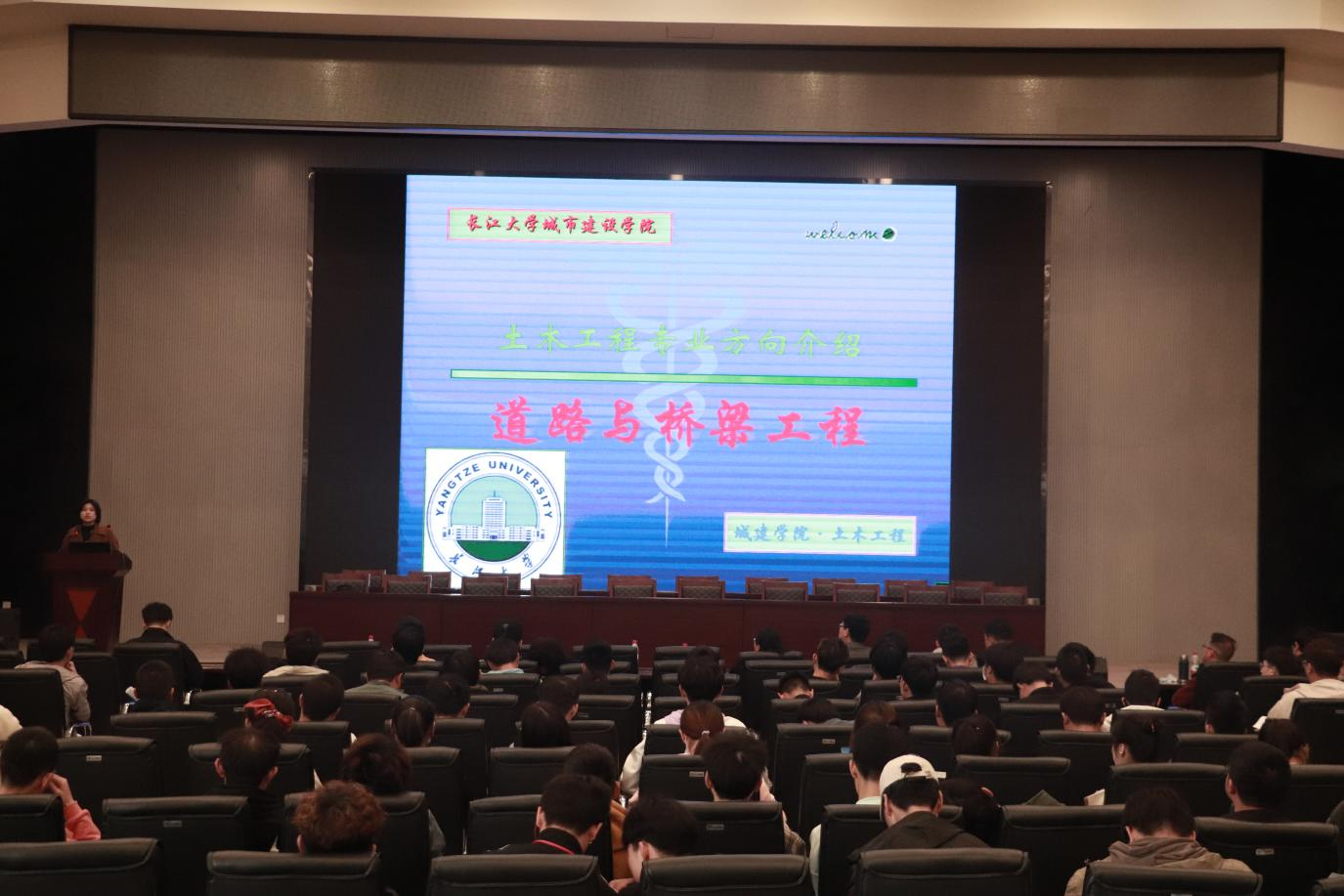 最后,由建筑学高杨老师、城乡规划乔杰老师带领建筑类员工到1056报告厅进行宣讲。土木类在1058报告厅继续宣讲,由土木工程(卓越)与建筑工程雷小宏老师,道桥系阳霞老师,岩土与地下工程郝勇老师,工程管理黄庆瑞老师及13届给排水专业毕业生——碧桂园市政能源负责人刘浩员工进行各专业的宣讲。