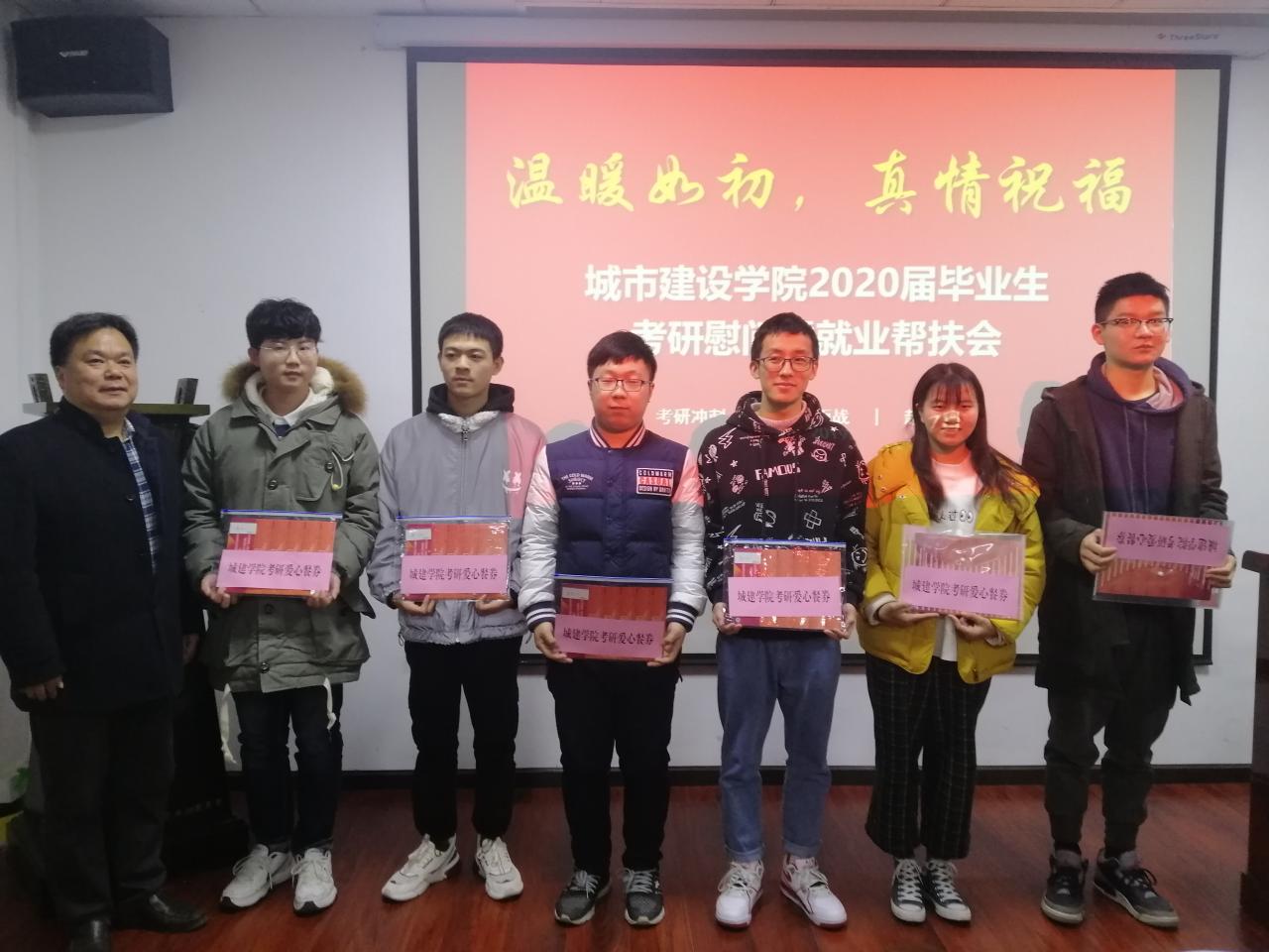 紧接着进行“送温暖”环节,由公司党委书记孙涛老师为考研学子送上爱心餐券,以表达全院师生对考研学子衷心的祝福。