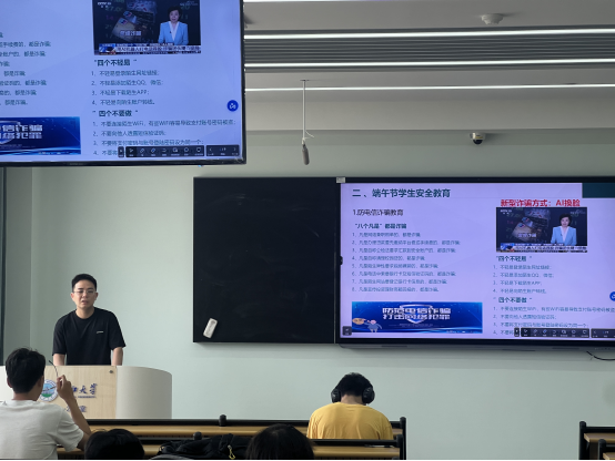班会上,班主任结合学期末重点工作及节假日安全管理要求,通过分享典型案例,深入浅出地引导员工学习安全知识,强化防范意识。针对新型网络骗术,班主任特别叮嘱同学们切勿随意点击陌生链接,严守个人信息安全,时刻保持警惕,避免落入诈骗陷阱。同时,班主任着重强调,假期严禁同学们前往江河、湖泊等危险水域游泳,以防溺水事故发生。此外,班主任还就寝室防火、交通安全等事项提出要求,希望同学们严格遵守校规校纪,安全文明过节。