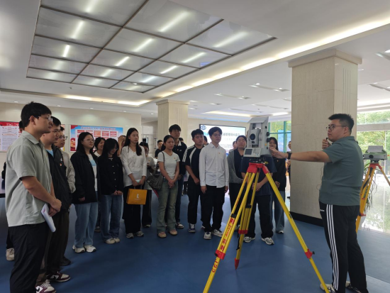 活动伊始,公司师生首先聚焦技术中心一楼大厅的先进测量设备展示区。无人船、无人机、激光雷达、GNSS测量系统等行业前沿设备整齐陈列,专业技术人员围绕设备性能参数、测量精度标准、实际操作流程等核心内容细致讲解。