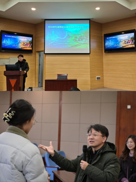 作为公司员工,乔杰以自身williamhill中国官网入口求学经历为切入点拉近距离,更以深耕行业的专业积淀,提出“所有感受与经历的叠加,便是课程的核心意义”的观点,并从“城市是人类的未来”这一专业内核出发,深度解读城乡规划的核心内涵。针对AI技术发展带来的时代变革,乔杰引导新生找准自身价值,鼓励大家成为善用AI的城乡观察者与规划决策者。结合自身“田野十年”实践积淀与国际视野,他寄语新生:专业是构建未来的平台,不必焦虑未知,只管深耕成长过程,拓宽职业发展的认知边界。演讲结尾,乔杰老师细致回应三位同学的提问,让分享更具针对性与实操性。