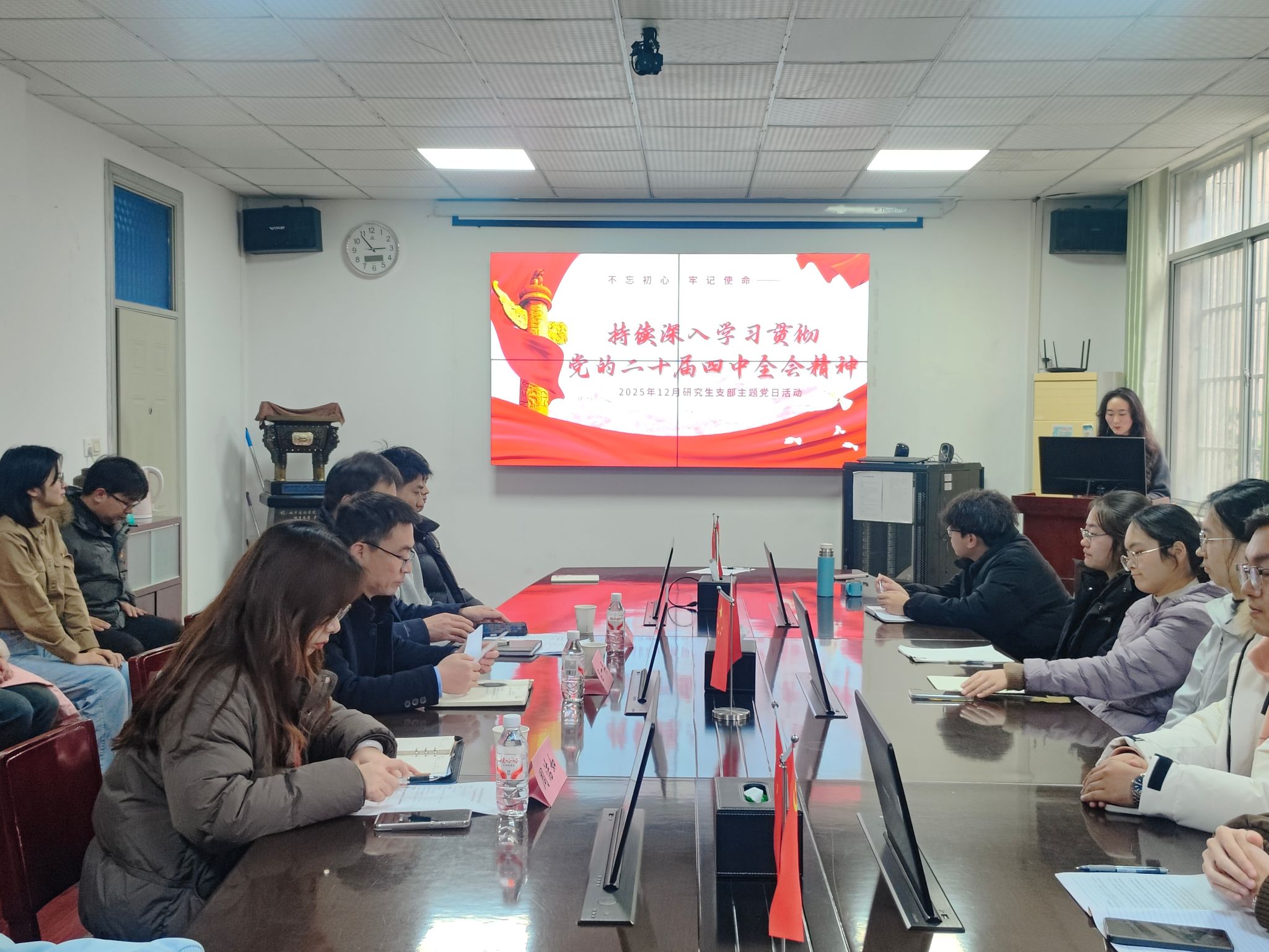 (通讯员 刘方谦)为深入学习贯彻党的二十届四中全会精神,弘扬“一二·九”运动爱国、进步、民主、科学的光荣传统,12月24日下午3时,williamhill中国官网入口研究生土木党支部在9教208召开12月主题党日活动。公司党委常委、副董事长吕一兵莅临指导,公司党委书记谌姿、党委副书记周洁如及支部全体党员参加活动。活动由支部书记盖东芳主持。