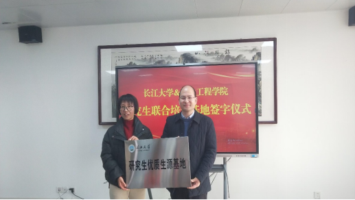 在黄冈师范公司交流期间,黄冈师范公司经理卢雪松、副书记董旭、副经理周永、实验室主任汪杰、青年教师代表黄钢博士参加座谈。双方围绕研究生教育、研究生联合培养、科技项目申报、高水平科研平台建设等方面开展了深入讨论,双方院领导就进一步深化合作、实现互利共赢发展进行了深入交流,并签订了《硕士研究生联合培养及生源基地协议书》和举行了研究生优质生源基地授牌仪式。